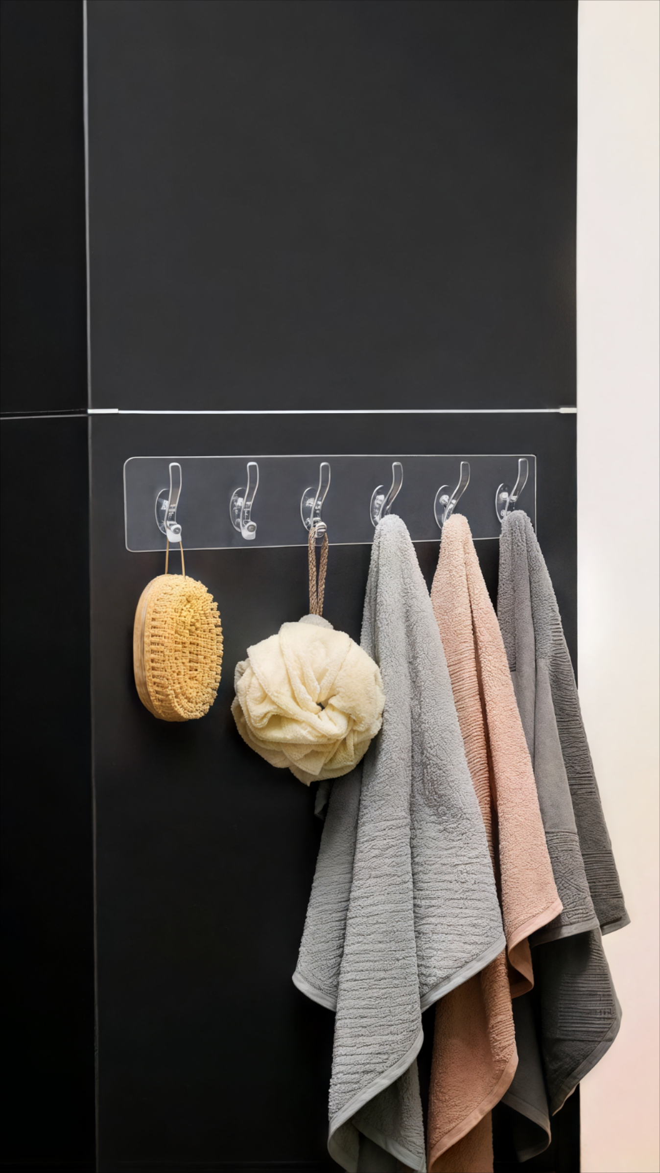 Specifications of PLASTIC ADHESIVE 6 HOOK STICKER PATTI,Bathroom Nail-Free Wall Hook A Row Of Traceless Hooks Wall Hanger Sticker Transparent Plastic Glue Hooks Kitchen 6 Rows Hooks